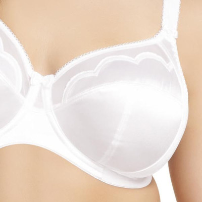 Splendide soutien gorge grande taille dans une luxueuse matière satinée, incrustée de dentelle.