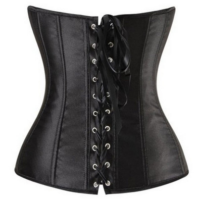 Joli corset satiné noir que vous pourrez marier avec toutes vos tenues, pantalons ou jupes.
