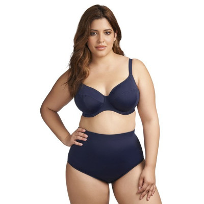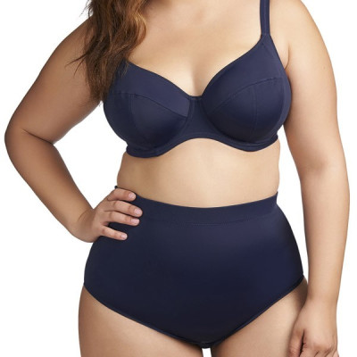 Slip de bain de couleur bleue navy avec taille haute pour masquer le bas du ventre. Léger et séchage rapide pour ce bas de maillot de bain Elomi Swim grande taille